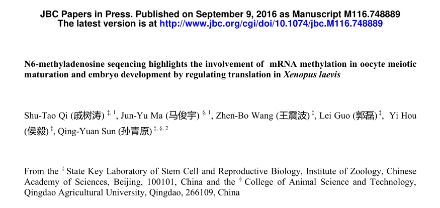 05月03 【成功案例】百邁客云 BLAST小工具 助力 孫青原老師 發(fā)表《N6-甲基腺苷測序揭示了mRNA甲基化通過調(diào)節(jié)非洲爪蟾的翻譯水平對卵母細(xì)胞減數(shù)分裂成熟和胚胎發(fā)育的影響》